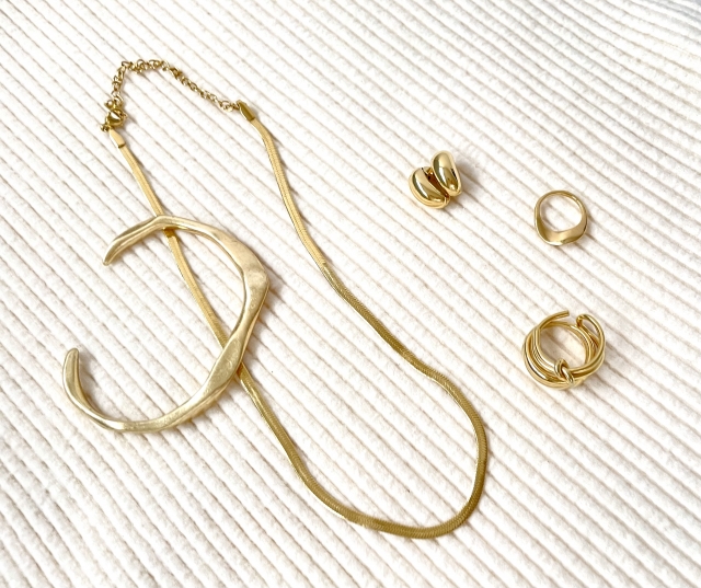 24K・22K・18K・14Kといった高純度の金素材を厳選使用。自社工場による一貫生産体制で、品質の安定と納期の柔軟な対応を両立しています。